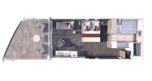 These incredible staterooms take our standard veranda stateroom and, with the touch of a button, blur—even erase—the boundaries between inside and outside living space. This brilliant innovation gives you luxurious open air access to the sea, whenever you wish.