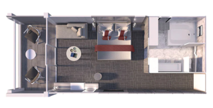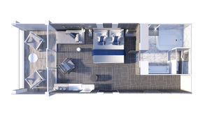 Located at either end of the ship, in the Deluxe Porthole View with Veranda you’ll have the choice to relax in your spacious living area, or step outside to enjoy morning coffee and evening sunsets. Enjoy in-room automation that allows you to control everything from lighting, to temperature, and service with a simple touch screen. You can even choose a setting that will tuck you in and gently wake you in the morning. It’s world-class service at the touch of a button.