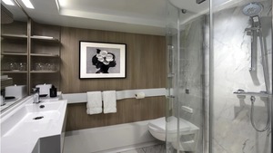 Prime Edge Stateroom with infinite Veranda are located in the most-desirable locations on the ship. These incredible staterooms take our standard veranda stateroom and, with the touch of a button, blur—even erase—the boundaries between inside and outside living space. Your entire living space becomes the veranda, letting you walk right out to the water’s edge. This brilliant innovation gives you luxurious open air access to the sea, whenever you wish. Edge Staterooms offer the latest technology that allows you to precisely adjust nearly every comfort feature in your stateroom. The in-room automation allows you to control everything from lighting, to shades, to temperature, and service with a simple touch screen. You can even choose a setting that will tuck you in and gently wake you in the morning. It’s world-class service at the touch of a button. Not only do these staterooms feature the latest in design and technology, but they’re even more spacious. In fact, they’re 23% larger than our award-winning Celebrity Solstice® Class veranda staterooms. The added space allowed us to include a luxurious king-sized bed from our new Cashmere Bedding CollectionTM. Bigger rooms called for larger bathrooms, too. So, we expanded them almost 20% and included even larger modern showers.