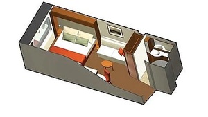 Single Inside Staterooms are perfectly proportioned for the individual traveler. Spacious. Stylish. Singular. These rooms offer all the same amenities and services as a double stateroom, including our exclusive eXhale® bedding, featuring the Cashmere™ Mattress; premium, custom-blended bathroom products; 100% cotton plush bathrobe and towels, and more.