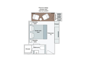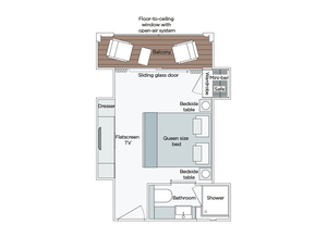 These chic suites are perfect for viewing the scenery pass by. Our innovative all-weather balcony system allows the floor-to-ceiling window to drop down electronically and an indoor decked area allows you to enjoy the sights in all their glory.
