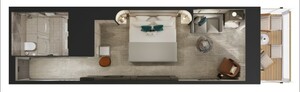 The Ilma Suite embraces the ever-changing vistas along the horizon with an expansive private terrace of 291 to 301 square feet. Sunbathe with a traveling companion on the dual chaise lounges or curl up with a bestseller on the comfortable outdoor sofa. Host friends for dinner with a seaside harbor as a backdrop when you dine alfresco on the terrace or view the tableau through the floor-to-ceiling windows of the indoor dining area. Within up to 657 square feet of interior space, the cozy bedroom retreat features a luxurious king bed, spacious closets, and a modern shower system in the bath, which may also include a separate soaking tub.