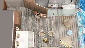 New to the Galapagos Islands is the Infinite Veranda®. A key transformational element, this game-changer virtually takes your entire room to the water’s edge with the touch of a button. The Ultimate Sky Suite with Infinite Veranda offers a total of 365 square feet.