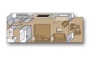 Filled with light from floor-to-ceiling windows overlooking a private verandah, these staterooms include a sitting area, two lower beds convertible to one queen-size bed—our signature Mariner's Dream™ bed with plush Euro-Top mattresses, and bath tub with premium massage shower-heads.