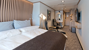 Extra Large Corner Suite without balcony. Aft corner suite with sofabed, flexible sleeping arrangements, large windows, TV, minibar, bathrobe, kettle, tea and coffee, espresso maker. The first minibar setup is included for each item, each replenishment is chargeable.