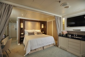Step out onto your private balcony with a freshly made cup of coffee and take in the grandeur of ocean travel. This suite is packed with stylish comfort and includes a king-sized bed with a spectacular horizon view.