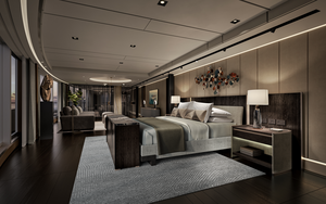The largest suite of The World’s Most Luxurious Fleet® features a sculptural living room, a floating natural stone staircase plus a private in-suite elevator, and a formal dining area complemented by a glass-enclosed bar. Guests also enjoy exclusive access to The Study, an intimate dining venue that accommodates up to 12 guests, offering a refined setting for private gatherings. The primary suite upstairs offers unparalleled ocean views, a free-standing tub and a spa-inspired bathroom adorned with marble and onyx. Highlights include a private gym, sauna and a full guest suite with private bath.