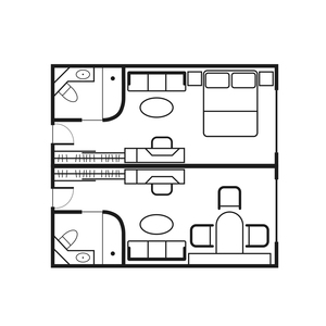 Bath Queen or Twin Configuration Room Service Available Air Conditioning Coffee Machine Hair Dryer Media/Entertainment Station Suite Benefits Vanity Area Lounge Area Toiletries Provided Safe Desk Telephone Dining Area Shower TV Wi-Fi (Additional Cost) Free Mini Bar