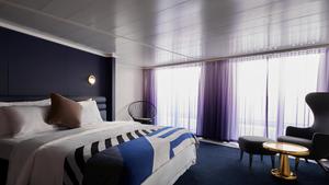 When you're a rockstar — there's no such thing as being "too much" and there's no part of the ship that isn't yours to explore. Our suites are Tom Dixon-designed and equipped with full size, fully stocked bars — so you can sip by the sea whether you're in the terrace hammock or at the champagne table under the stars.