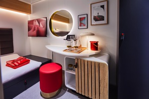 This is it. This is the suite. Positioned at the most forward part of the ship - the views are, to put it simply, unrivaled. Get lost watching the waves from your outdoor hot tub or creating a new sound in your personal music room. But don't worry, you can find yourself again the next morning as you meditate alongside the waves on your sprawling, private terrace.