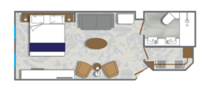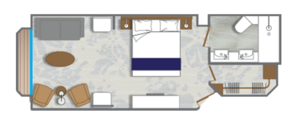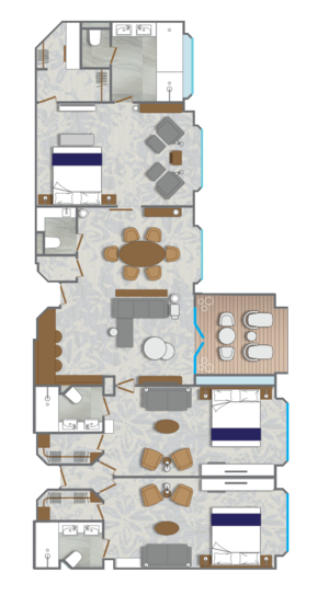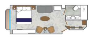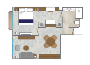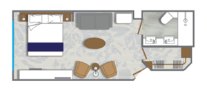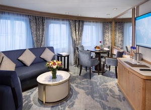 A stunning brand new owner's suites with 820 square feet of space featuring two bedrooms and two bathrooms, a verandah, and plenty of space in the sitting area for entertaining. This is the most sought after suite on the entire ship and once you stay here, you'll never stay anywhere else.