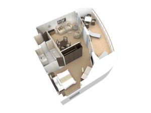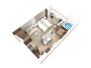Explore the world in comfort and luxury in this stylish, elegant stateroom featuring all the amenities of a boutique hotel at sea.