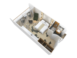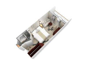With the polished style and stellar service of a Club Interior Stateroom, you'll enjoy our plush cotton robes, slippers upon request, French bath products, and 24-hour room service.